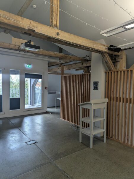 Befindet sich rechts im Saal hinter der Holzverkleidung.